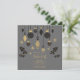Los adornos de los árboles de navidad negros y dorados, los frutos y las bayas sobre un fondo gris resaltan estas invitaciones de fiesta navideña con tus detalles en letras de moda. Perfecto para sus fiestas personales o de negocios. Solicitar la DESCARGA INSTANTÁNEA y/o IMPRESIÓN de invitaciones de parte. **EL TAMAÑO DE LA PLAZA requiere correo postal adicional en un sobre A7 (5" x 7") sin envío adicional.