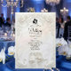 Set a tone of timeless luxury for your black-tie union with this Neoclassical design, capturing the essence of Old World romance and museum-quality art.This design features a sophisticated trompe l'oeil visualization of a sculpted limestone or marble frieze. The artwork mimics the look of a bas-relief carving in shades of warm ivory, cream, and beige, creating a realistic play of light and shadow without actual physical texture. The ornate frame includes 3D-style renderings of acanthus leaves, blooming white roses, graceful swans, and a central cameo silhouette of a bride and groom, overseen by an angel figure playing the violin. The typography contrasts sharply in formal black serif and elegant calligraphy.This is a flat printed image with a faux sculpture effect, not actual raised material or stone.