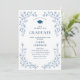 Invitación Ornate Blue Floral Grace 4 Photo Graduation Party