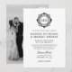 Personalizado de Monograma Ornate Floral Boda Elegante Invitaciones a la Boda Blanca Negra presenta sus iniciales personalizadas de monograma en una tipografía de escritura elegante rodeada por un marco floral ornamental. Añade tu foto favorita al revés. Perfectas invitaciones monogramadas de lujo para bodas, compromisos, aniversarios, cumpleaños, fiestas de cócteles, fiestas, Navidades, celebraciones, creaciones corporativas y de negocios. Creado por Evco Studio www.zazzle.com/store/evcostudio
