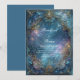 This invitation captures the grandeur of the cosmos with its deep teal and azure galaxy backdrop, shimmering with countless points of starlight and swirling nebulae. The focal point is encased in an opulent, three-dimensional gold filigree frame, adorned with intricate scrollwork and brilliant teal jewel accents that catch the light beautifully. The high-contrast palette and rich, metallic textures lend a sense of ancient magic and royal sophistication to your announcement, reflecting a signature high-fantasy aesthetic. You can use this breathtaking design to invite your loved ones to a grand evening wedding ceremony or a formal celestial-themed celebration under the stars. It provides a regal and sophisticated first impression for an enchanted gala or a high-fantasy winter union. This dreamy and detailed aesthetic is perfectly suited for various high-end social celebrations or creative luxury branding projects.