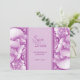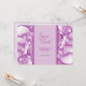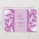 Las orquídeas en flor, juguetonas y casi extravagantes, proporcionan un atractivo ornamental para esta boda, salvo las fechas. Presenta colores púrpura y ciruela. La parte delantera de la tarjeta tiene "Save the Date" con el nombre de la pareja boda y la fecha de la ceremonia. La parte trasera de la tarjeta también tiene el nombre de la pareja boda y la fecha del boda junto con "Invitación a la boda oficial a seguir". También puede añadir la foto deseada en la parte posterior. Utilice la plantilla para personalizar.