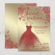 Invitación Oro adorable Roses rojos rojo vestido purpurinoso