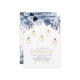 Invite a sus invitados a su día especial con esta hermosa invitación de bodas de aniversario. Este diseño sofisticado presenta hermosas flores de tono azul y luces de cuerda doradas con accesorios de luz geométricos. Puede personalizar el texto y el color de fondo. Invitación perfecta para celebraciones de 50 años de bodas o otros eventos de invierno.