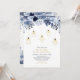 Invite a tus invitados a tu día especial con esta hermosa invitación de baby shower. Este diseño sofisticado cuenta con hermosas flores de tono azul y luces de cadena doradas con accesorios de luz geométricos. Puedes personalizar el texto y el color de fondo. Más papelería y suministros para fiestas están disponibles en mi tienda BaraBomDesign.