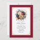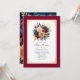 Invitación de boda dorada, azul marino y borgoña con flores en primavera. Ideal para una boda en el jardín de primavera.