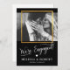 Elegantes, sofisticadas y modernas tarjetas de anuncio de compromiso. Colores negro y blanco con marco de lámina de oro falso. Corazón pequeño. Letras manuscritas de topografía de guión. La parte delantera de la tarjeta tiene una foto / imagen y WE'RE ENGAGED en letras de topografía de guión. Perfecto para cualquier estilo de boda, en cualquier momento del año. Invitaciones fáciles de editar: personalice con su texto. Ver colección.