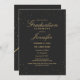 Modernas, elegantes y modas imprimieron hongos de oro en negro con un sobredimensionado monograma, invitaciones a la ceremonia de graduación. Este diseño clásico y sofisticado es perfecto para un graduado elegante, elegante y de moda. Personalice con su propio mensaje en la parte delantera y un monograma personalizado inicial en la parte posterior. Todo el diseño de impresión fotográfica.