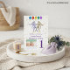 Un cuadro impresionista del cartel Gemini Zodiac en tonos violeta, azul y otoño y tonos con nuggets dorados. Son bonitos globos fiestas que escriben "Happy" en la parte superior y confeti dorado que se muestran al azar en la tarjeta. Personalizar la tarjeta delantera con tu foto. La parte posterior de la tarjeta presenta un fondo de pintura impresionista idéntico con colores azul y blanco y violeta claro. Un elegante broche con perlas blancas y nuggets dorados ofrece una agradable presentación a la invitación. El texto delante de la tarjeta está escrito en color púrpura. El texto de la parte posterior de la tarjeta está escrito en colores blancos. Puede cambiar los colores del texto con las herramientas Zazzle.