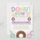 La invitación caprichosa del cumpleaños del buñuelo/del tema del buñuelo que ofrece el ilustracion de anillos de espuma deliciosos y colorido asperja