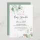 Invitación Oro Eucalipto Caligrafía Bebé Sprinkle
