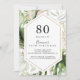 Esta geométrica invitación a la fiesta de cumpleaños 80 de oro tropical verde geométrico es perfecta para una simple fiesta de cumpleaños. El diseño se basa en una acuarela pintada a mano de oro, palmeras verdes y hojas de plátano con flores rosas incrustadas en ramos, adornadas con un marco geométrico.