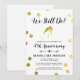 Una invitación simple y elegante para una celebración de aniversario de boda. Los puntos de lámina dorada rodean la silueta de una novia con lámina dorada. Los colores del fondo y la fuente se pueden cambiar para que coincidan con el tema de su evento.