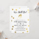 Una simple y elegante invitación para una celebración de aniversario de bodas. Puntos de foil dorado rodean una silueta de novia en foil dorado. Los colores del fondo y la tipografía se pueden cambiar para que coincidan con el tema de su evento.