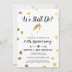 Una simple y elegante invitación para una celebración de aniversario de bodas. Puntos de pan de oro rodean una silueta de novia con pan de oro. Los colores del fondo y la tipografía se pueden cambiar para que coincidan con el tema de su evento.