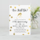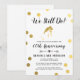 Una invitación simple y elegante para una celebración de aniversario de boda. Los puntos de lámina de oro rodean la silueta de una novia en lámina de oro. Los colores del fondo y la fuente se pueden cambiar para que coincidan con el tema de su evento.