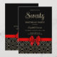 Esta elegante invitación de cumpleaños femenina presenta un contorno geométrico de oro boda de Egipto y una cinta de arco rojo en un fondo negro. Todo el texto se puede personalizar según sus necesidades.