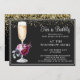 Invitación Oro negro de vidrio de champán víspera de Año Nuev
