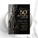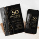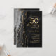 Invitación de sorpresa de aniversario número 50 de ágata negra y dorada. Diseño moderno y elegante con fondo de geoda de mármol de ágata acuarela, fuente de letra de tipografía y dorado falso brillante. Tarjeta de invitación elegante perfecta para una fiesta de aniversario de boda con clase. Invitaciones de Zazzle impresas o plantilla digital para imprimir instantáneamente.