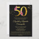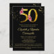 Invitación Oro Negro Español Floral Rosa 50 Aniversario
