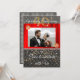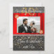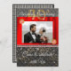 La invitación Chic Black y Gold con seda roja presenta la fotografía de la pareja. La imagen está decorada en la parte superior izquierda y en la parte inferior derecha con un broche de diamantes dorados y rojos.
