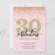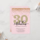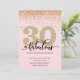 Elegante 30 rosado y dorado y fabulosa invitación de fiesta de cumpleaños con acentos purpurinas. Añada los detalles de su fiesta utilizando nuestra plantilla sencilla.