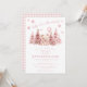 Celebra la llegada de tu pequeña con nuestra tierna invitación a ducharse con la temática de una bebé de invierno "hace frío afuera". Con un lindo oso de peluche con el arco sosteniendo un globo rosado, sentado entre pinos decorados y copos de nieve rosados cayendo del cielo. Esta invitación marca el tono perfecto para un invierno dulce y dulce o la celebración de la ducha navideña.