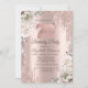 Invitación Oro Rosa, perforaciones Purpurinas, flores blancas