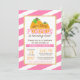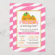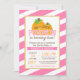 Segundas invitaciones del cumpleaños de la pequeña calabaza moderna. Atracción de rayas rosadas y blancas diagonales, de la falsa frontera del purpurina del oro y de las calabazas de la acuarela del naranja. Un de moda invita para una fiesta de cumpleaños temática de la caída.