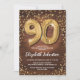 Invitación Oro Rústico con Brillo Cumpleaños 90