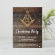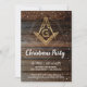 Invitación Oro Rústico Madera Fiesta Navideña Masónica de Nav