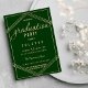 Diseño elegante, moderno y geométrico de bosque verde y dorado con tipografía manuscrita de oro fino impreso. Esta invitación a la fiesta de graduación de oro y verde forestal de lujo es la impresión perfecta para cualquier evento especial de chica. Personalizar este diseño con sus detalles y monograma inicial.