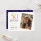 Invite a tus amigos a celebrar un importante hito con esta deslumbrante Invitación de Cumpleaños "50 y Fabulosos"! Con un diseño elegante, chic y divertido con texto en negrita dorado y azul marino y diseño azul marino y dorado en la parte trasera, esta invitación establece perfectamente el tono para una fiesta de cumpleaños número 50 divertida y elegante. Puedes personalizar fácilmente todos los detalles personales, incluyendo la parte trasera de la invitación, para hacerla única, especialmente agregando tu foto favorita de la cumpleañera. Esta tarjeta glamorosa asegura que tus invitados sepan que están invitados a una celebración memorable, lo que la convierte en la elección perfecta para marcar cinco fabulosas décadas.