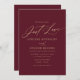 Invite a amigos y familiares a compartir la alegría de su boda con esta invitación moderna, con un guión elegante y una tipografía de oro sobre un rico fondo burdeos.