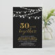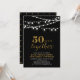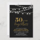 ¡Celebra tu día especial con esta elegante invitación a la fiesta de aniversario número 50! Este diseño presenta una tipografía de escritura dorada elegante y cuerdas de luz sobre un fondo negro. Artículos coincidentes disponibles en mi tienda BaraBomDesign.