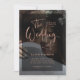 Estas modernas y elegantes invitaciones a la boda incluyen su propia foto personal cubriendo completamente el fondo. Un simple overlay negro contiene una falsa tipografía de escritura de moda dorada rosa, y la parte trasera de la tarjeta es negra. ¡Un aspecto elegante y luminoso que gustará a sus huéspedes!