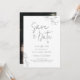 Ramas de orquídeas blancas, dibujadas a mano con lápiz de grafito, decoran esta sencilla pero sofisticada, elegante y chic tarjeta de save the date de boda que presenta caligrafía moderna pero texto clásico de boda. Algo viejo, algo nuevo... Plantilla para una foto de compromiso (o cualquier otra de su elección) de la feliz pareja en la parte trasera.