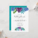 Coloridas acuarelas de hojas tropicales y orquídeas brunch boda invitación al agua color azul turquesa a la inversa de la limpieza de color.