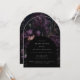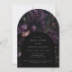 Se enamoran de celebrar tu ducha de novia gótica o la ducha de novia de Halloween con esta invitación a la ducha de novias gótica, oscura y romántica en forma de arco moderno, con un ramo de flores moradas al estilo de los antiguos maestros holandeses, oscuro y caray sobre un fondo negro. La parte posterior presenta obras de arte que coinciden. Utilice la herramienta de diseño y haga clic en "personalizar más adelante" para editar el estilo de fuente, el tamaño del texto y la ubicación de los gráficos si lo desea.