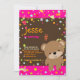 Invitaciones de cumpleaños de osito de peluche y lunares coloridos.