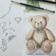 Formato cuadrado, "No podemos esperar" para las dulces invitaciones de Baby Shower del bebé niño y suministros de fiesta disponibles para coordinar. Arte dibujado a mano y pintado en acuarela en papel por la artista y diseñadora internacionalmente licenciada, Audrey Jeanne Roberts © Envíenos un mensaje para cualquier solicitud especial o productos necesarios.