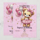 Invitación Oso Bailarina Rosa Globo Brillo Cumpleaños 1