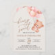 Invitación Oso bebé, globos rosados, primer cumpleaños