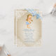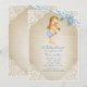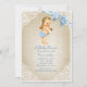 Invitación Oso blanco bebé niño y lazo azul en arpillera para