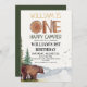 Invitación de cumpleaños número 1 de bosque, oso - un campista feliz - linda y única.
