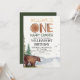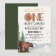 Invitación de cumpleaños número 1 de bosque, oso - un campista feliz - lindo y único.