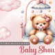 Invitación Oso de peluche chica rosa con acuarela fina en cun