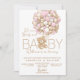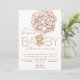 Teddy Bear Pink Heart & Balloon Baby Girl Invitación a la ducha