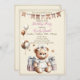 Un diseño encantador con un oso de peluche en tonos pastel, rodeado de globos, regalos y estrellas. Está decorada con una guirnalda de banderas y es perfecta para invitaciones, tarjetas de felicitación y otros productos festivos. Una elección versátil para los eventos infantiles, especialmente los cumpleaños.