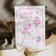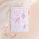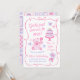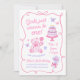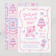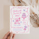 Una invitación de cumpleaños de niña caprichosa en una estética coqueta rosa suave. Este diseño único dibujado a mano presenta un oso de peluche, pastel, lazos y mariposas para un tema de fiesta pastel girly. Perfecto para niñas de cualquier edad.